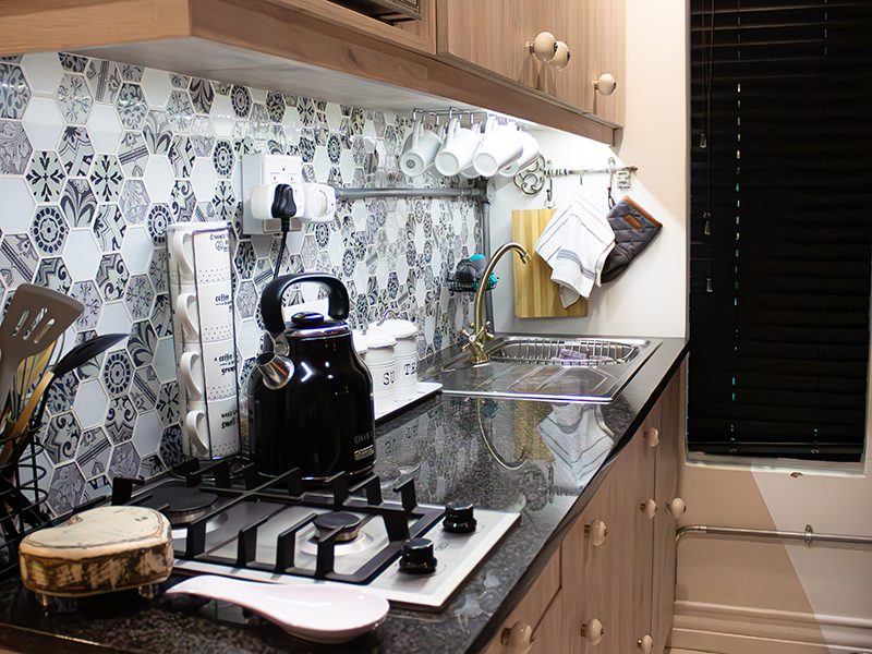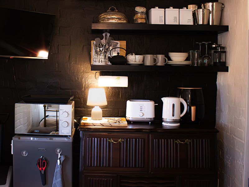 A quiet couple’s retreat for 2 people only. It offers a bedroom with a comfortable double bed, a sitting area with 2 ottomans, an en-suite bathroom with a tin bath, shower, basin and toilet and a well-equipped coffee-station.